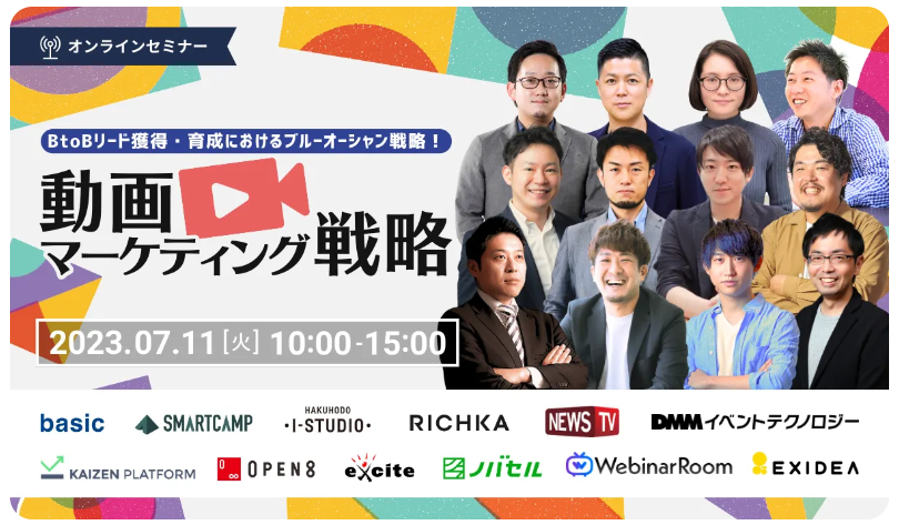 エキサイト株式会社主催 無料ウェビナー「BtoBリード獲得・育成におけるブルーオーシャン戦略!動画マーケティング戦略」が7月11日(火) に開催 パネリストなど当社社員3名が登壇