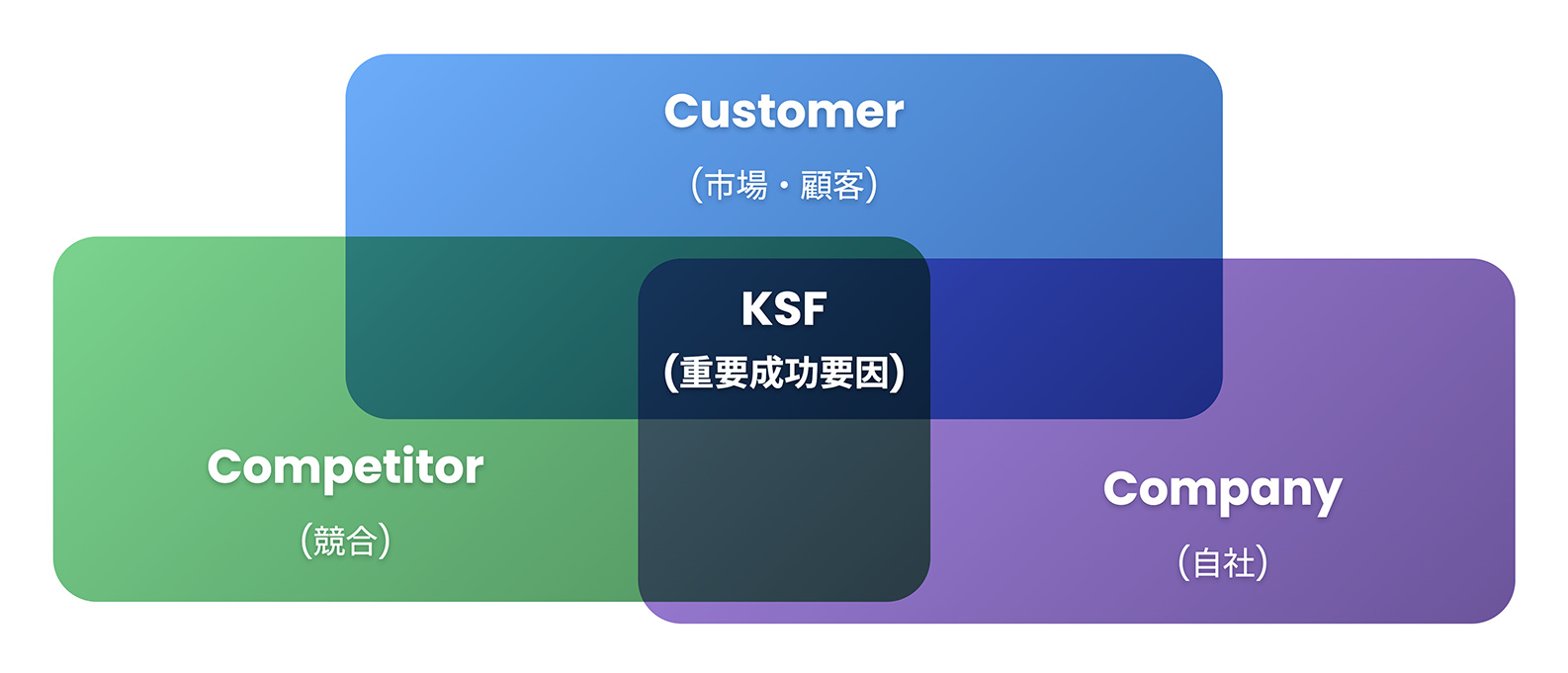 顧客視点の概念。「顧客は何を理由に買うか」を示します。(例、「一番価格が安いこと」がKBF)KSF: