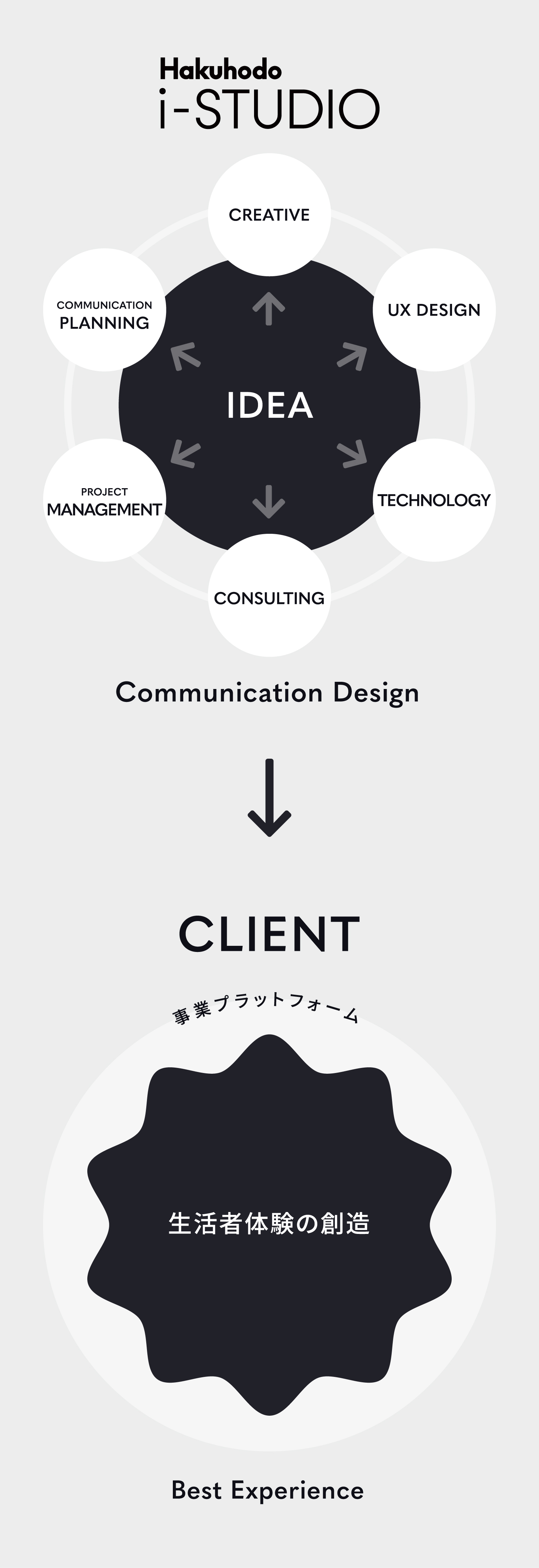今やお客様のビジネス基盤である事業プラットフォームを中心にあらゆる手法を組み合わせたコミュニケーションデザインで最高のブランド体験・ユーザー体験を創り出し生活者とお客様のエンゲージメントを高め続けます。